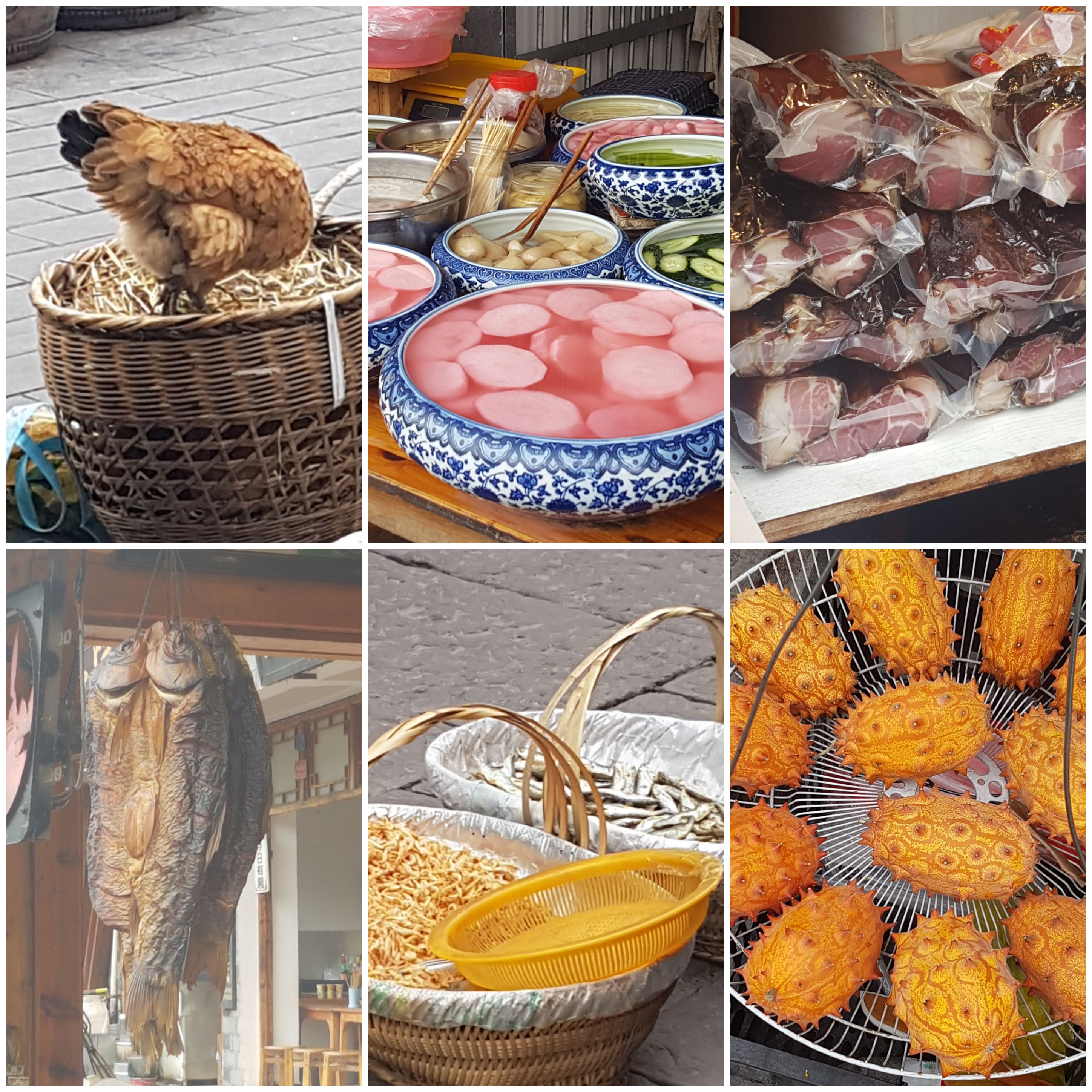 There were lots of interesting food items to buy – some I recognized, like fresh chicken or pickles, smoked ham or fish, and others? I think the spikey things are fruit.