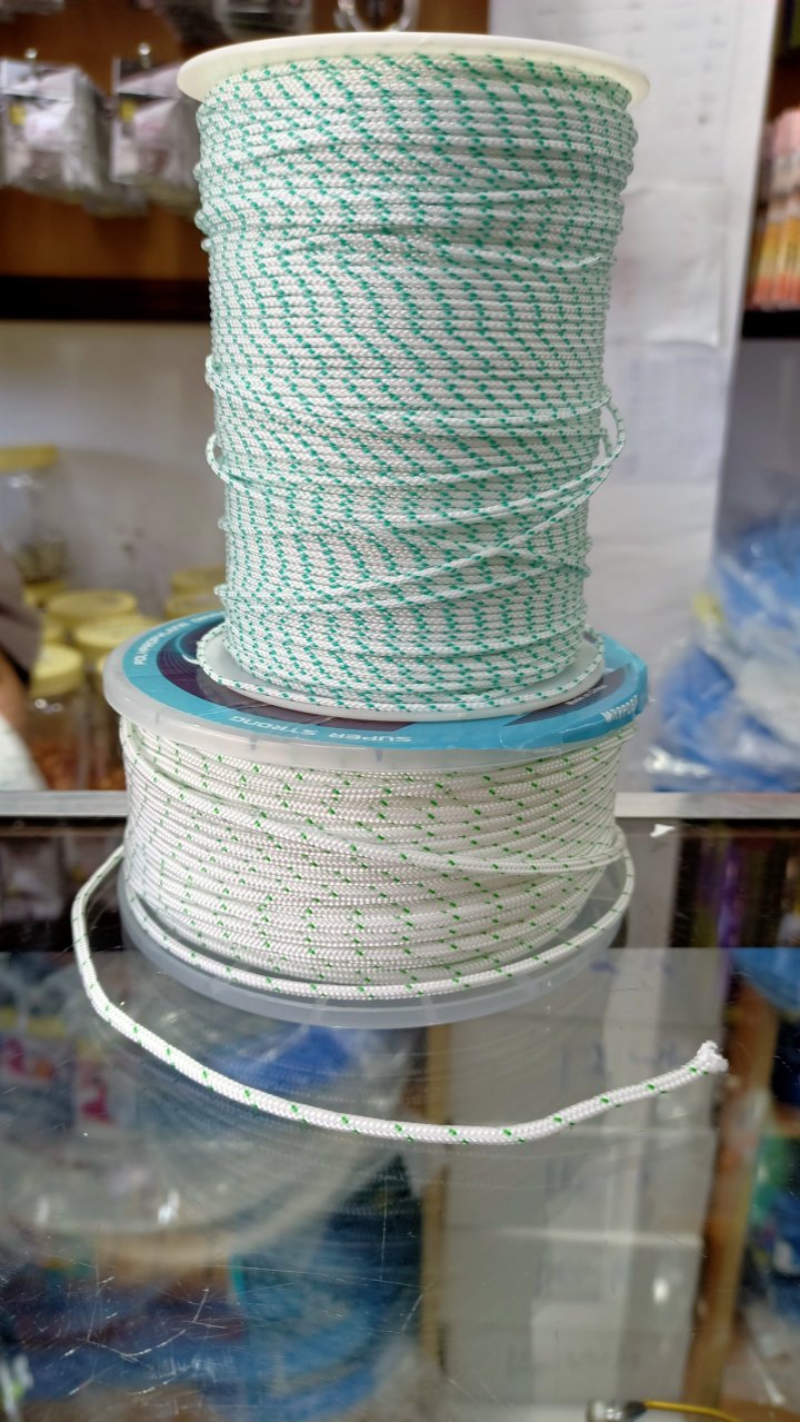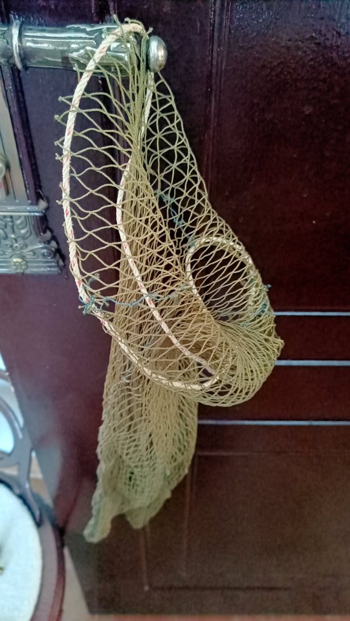 First I acquired the fishnet but it turned out to be too fine and flimsy. But I had also gone shopping for the rope for a handle, and it was too robust.